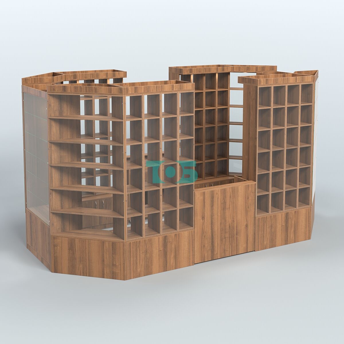 - Стеллажи имеют 24 отсека, верхний фриз с подсветкой.