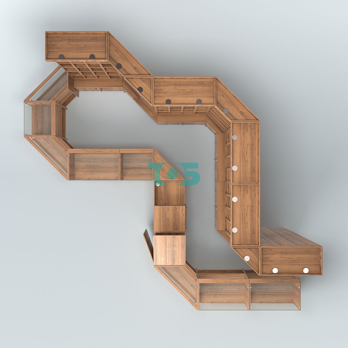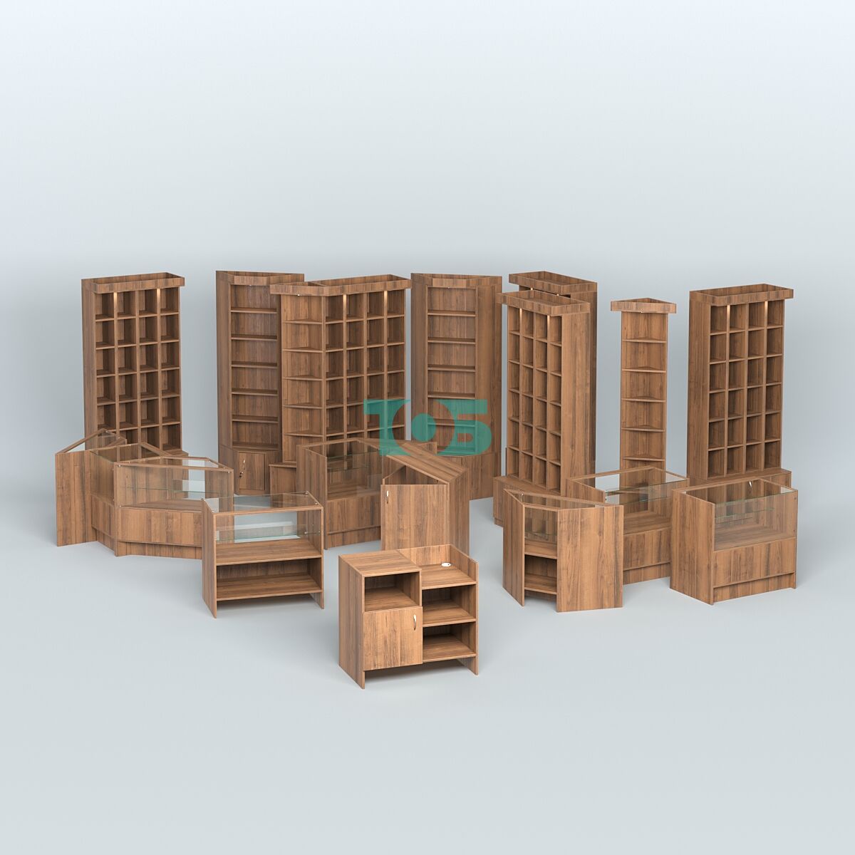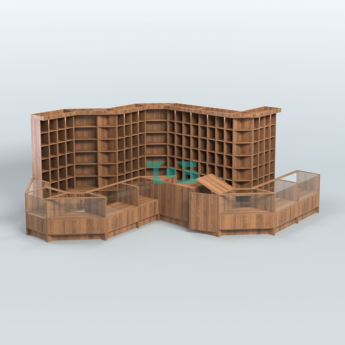 - Стеллажи имеют 24 отсека, верхний фриз с подсветкой.