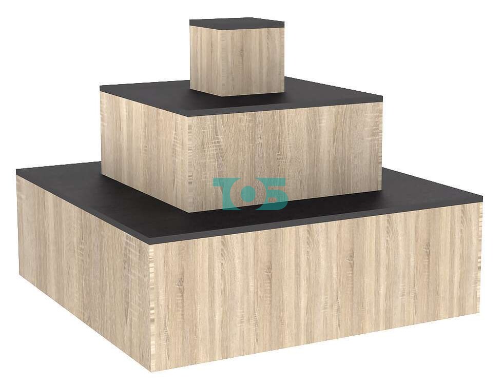 - размеры ярусов снизу вверх: 1500 х 1500 мм, 900 х 900 мм и 300 х 300 мм соответственно;