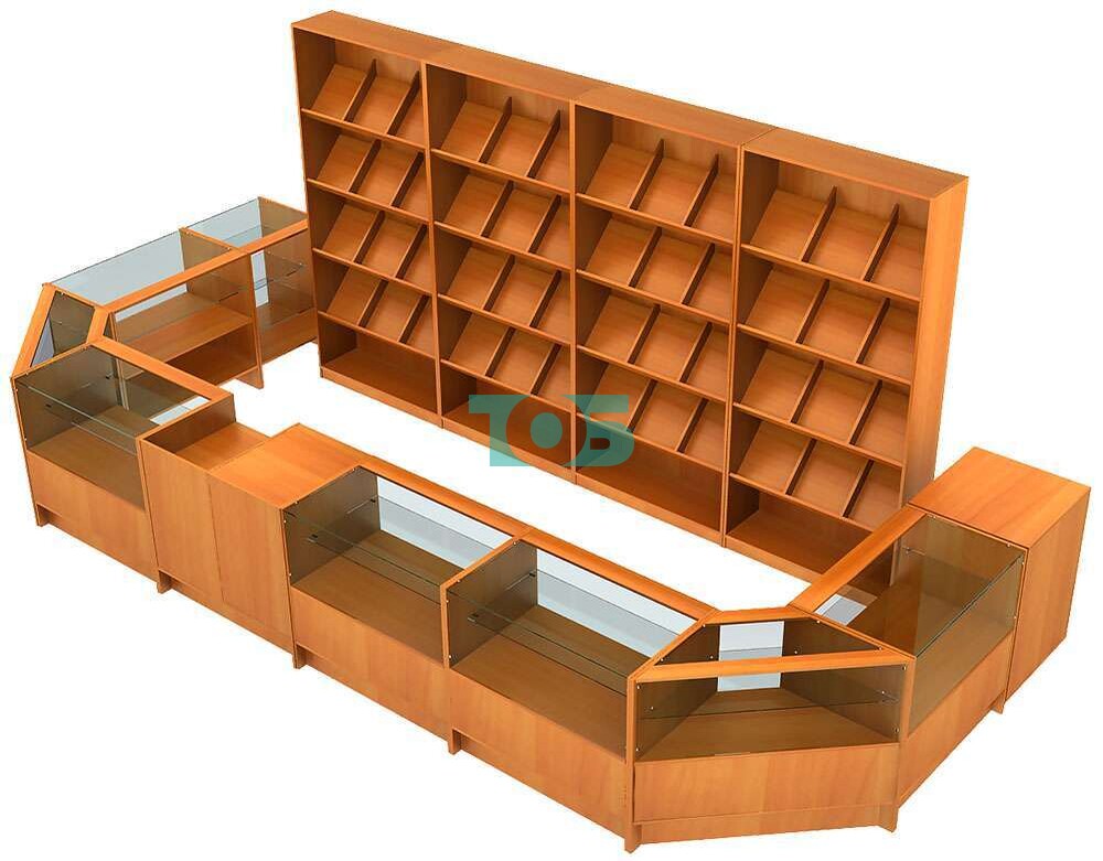 Стеллажи: за спиной продавца стоят стеллажи высотой 2100 мм, что позволяет эффективно использовать вертикальное пространство для размещения товаров.