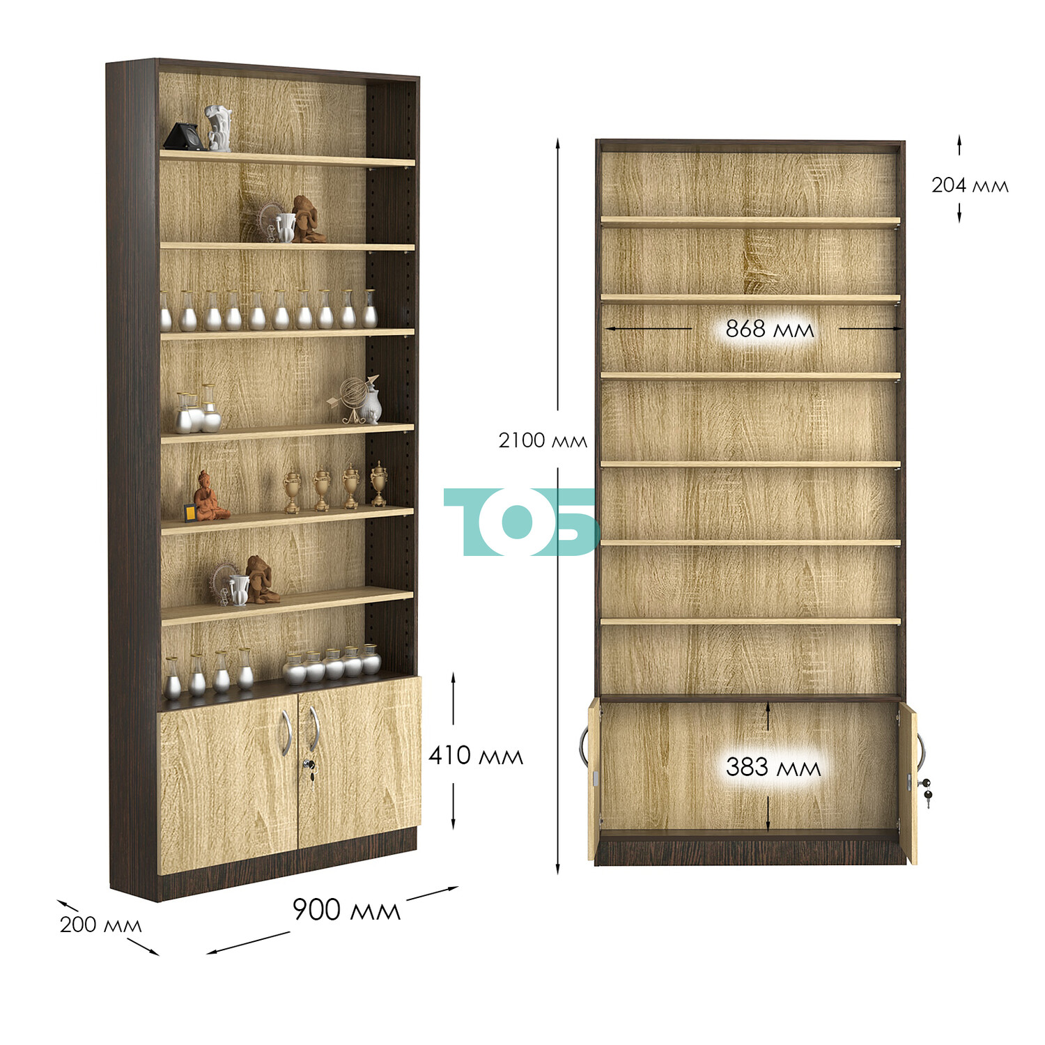 - нижний отсек закрыт распашными дверками с врезным замком;