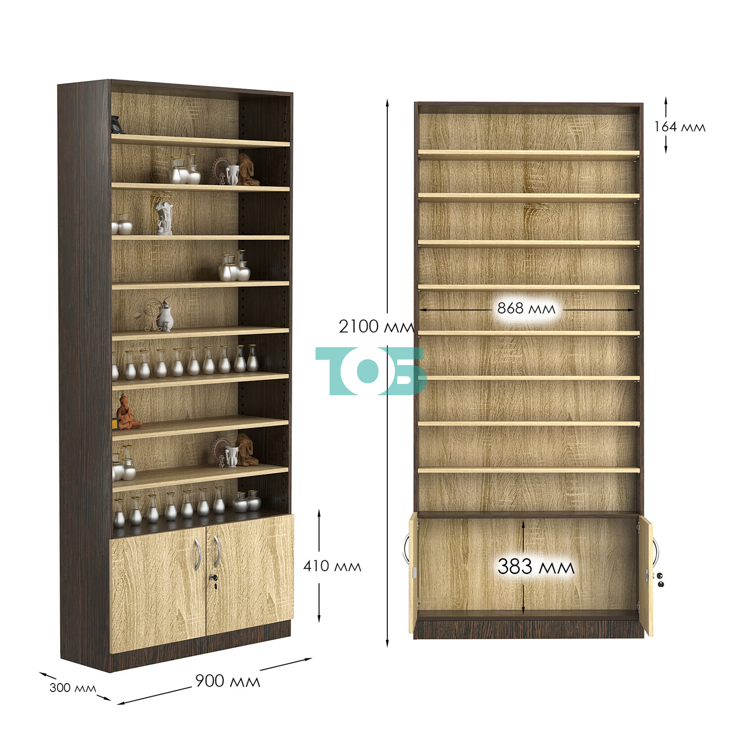 - нижний отсек закрыт распашными дверками с врезным замком;