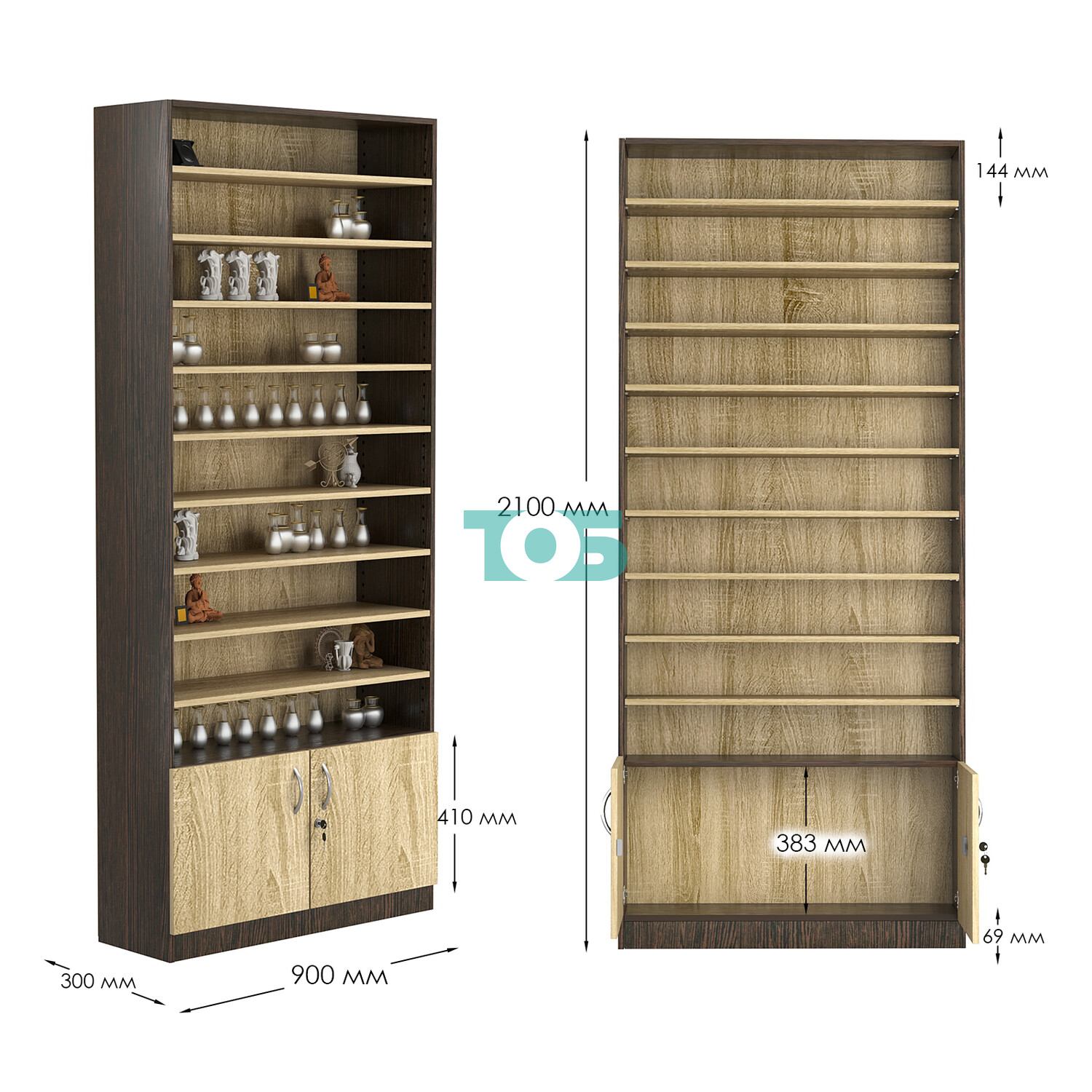 Отличия модели стеллажа из ДСП с 9-ю полками 300x900 мм серии LEVEL-9 №12 (З/C - ДВП):