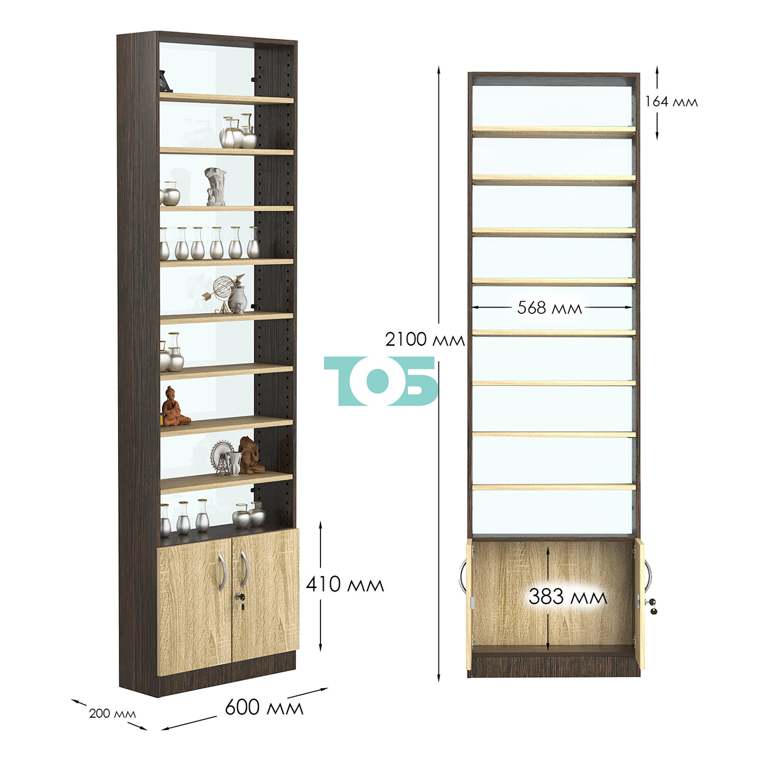 - нижний отсек закрыт распашными дверками с врезным замком;