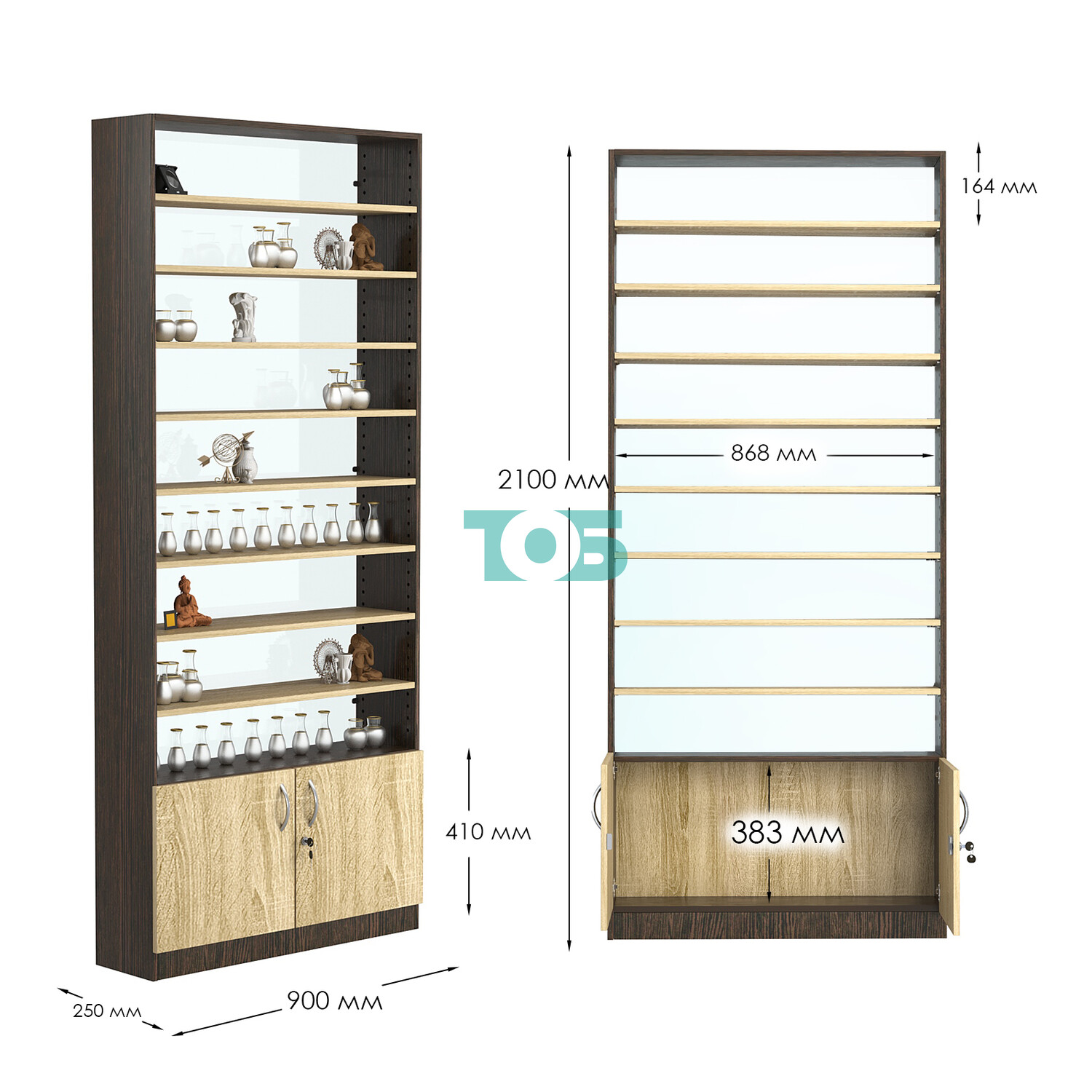 Отличия модели стеллажа из ДСП с 8-ю полками 250x900 мм серии LEVEL-8 №11-1 (З/C - СТЕКЛО):