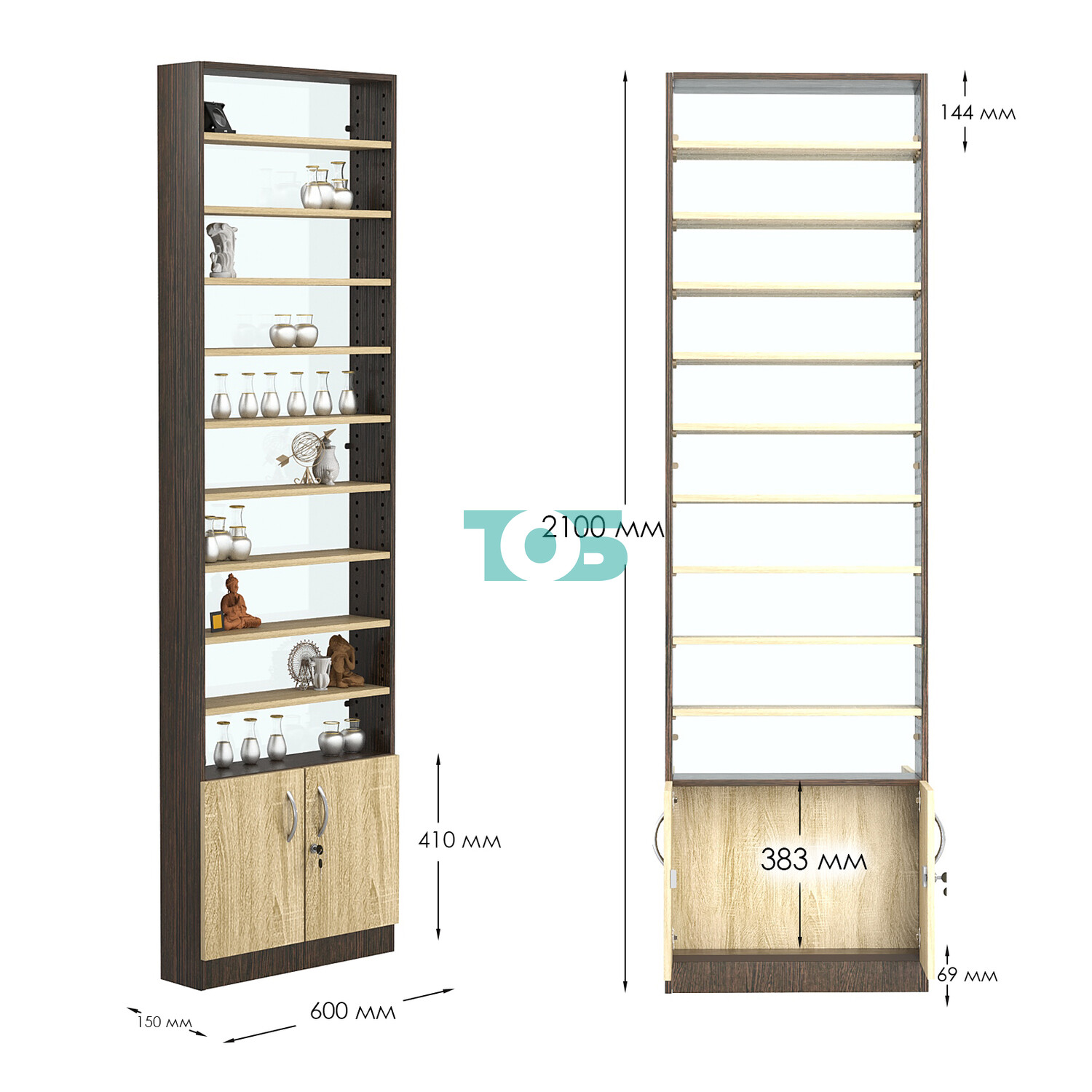 Отличия модели стеллажа из ДСП с 9-ю полками 150x600 мм серии LEVEL-9 №2-1 (З/C - СТЕКЛО):