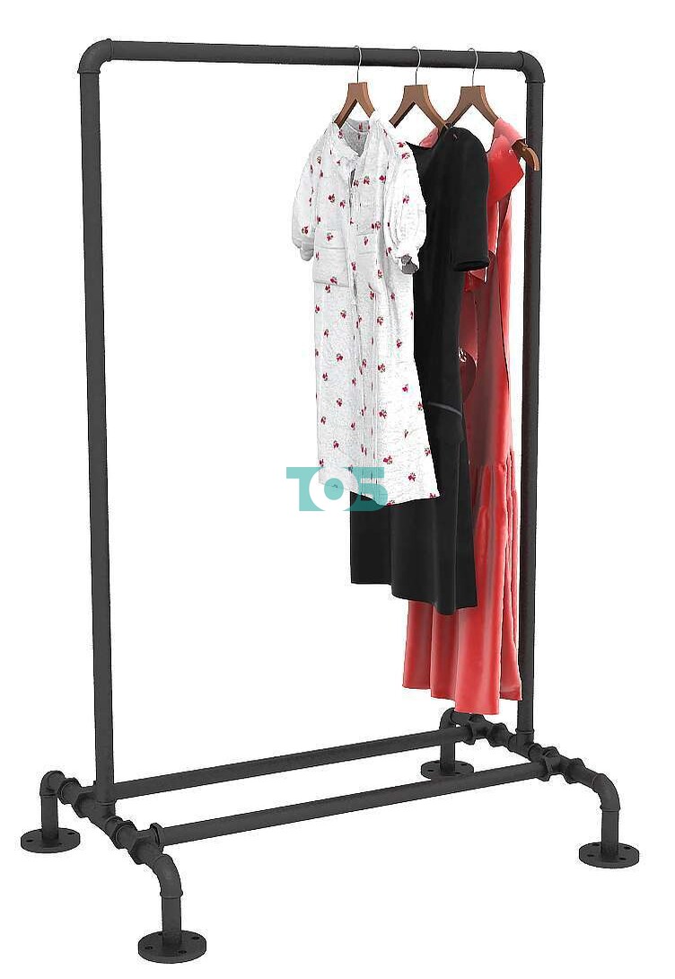 - вешало изготовлено из стальной толстостенной трубы диаметром 32 мм и водопроводных фитингов;