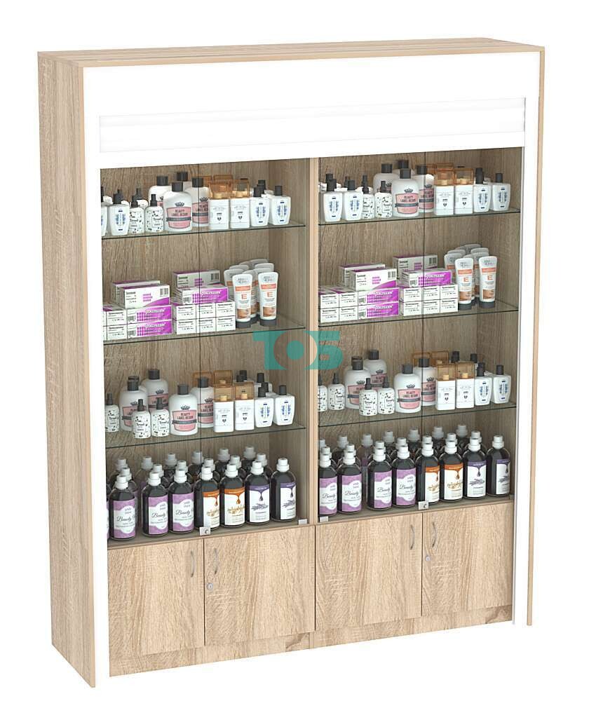 распашные стеклянные двери с замком в прозрачной части витрин;