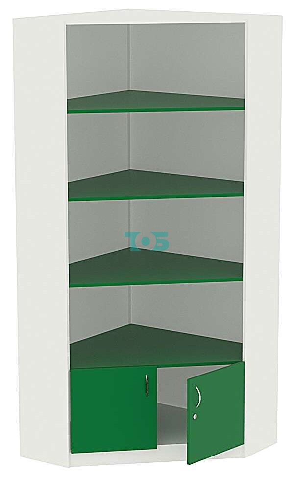 Отличия модели углового стеллажа из ДСП с дверками для аптеки ИЗУМРУД-5-2ДВ: