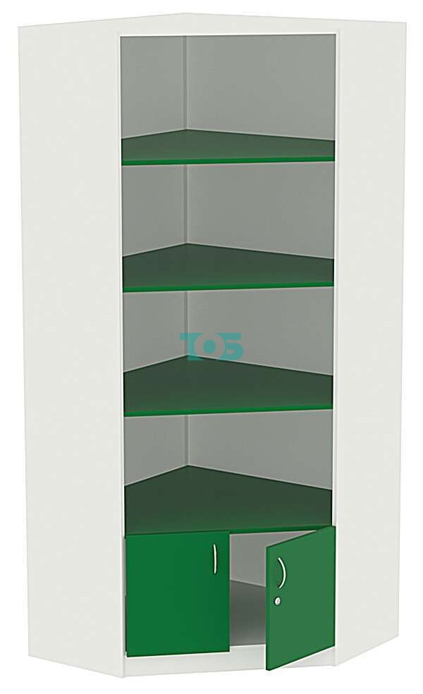Отличия модели углового стеллажа с распашными дверками для аптеки ИЗУМРУД-5-4ДВ: