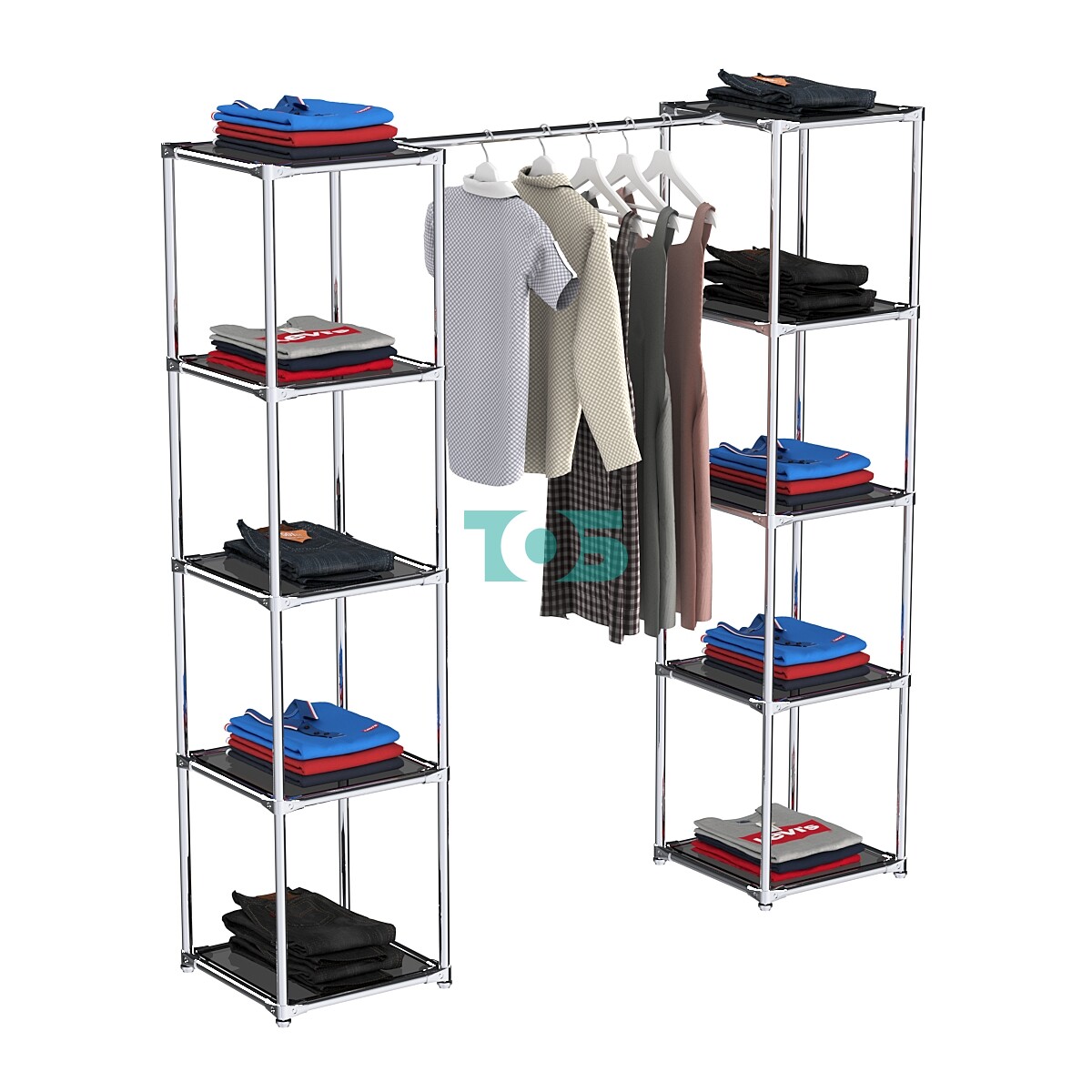 Возможность размещения полок на нужной высоте: Гибкость в организации пространства позволяет адаптировать вешало под различные типы одежды и нужды.
