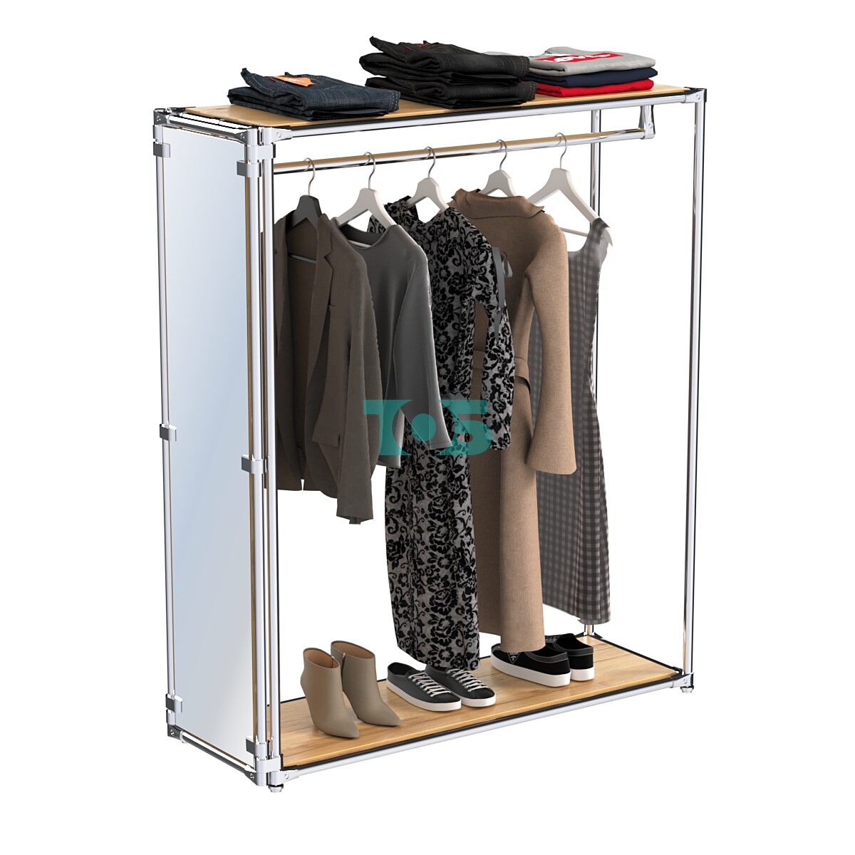 Один внутренний поручень: Предназначен для удобной демонстрации одежды, создавая дополнительное удобство для покупателей.
