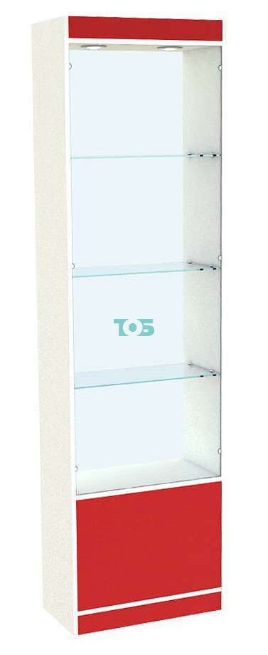 Отличия модели витрины прямоугольной из ДСП для аптеки первой линии RED-300-600: