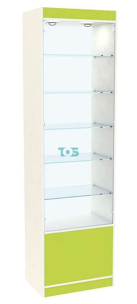 Отличия модели витрины прозрачной из ДСП для аптеки первой линии ЛАЙМ-04-600: