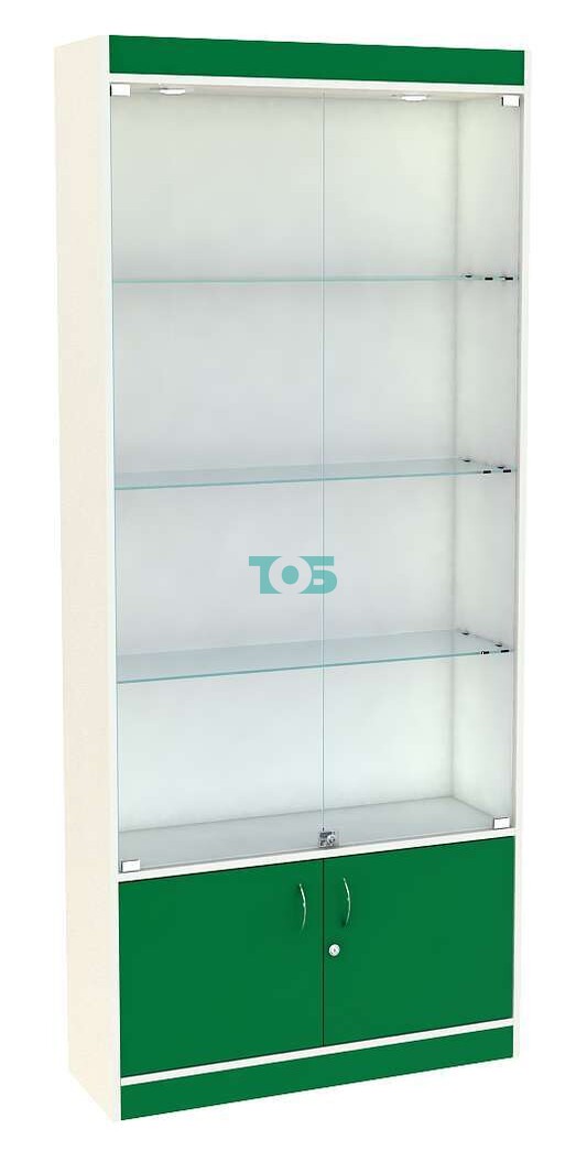Отличия модели витрины прямоугольная из ДСП с дверками для аптеки ИЗУМРУД-1-300-1: