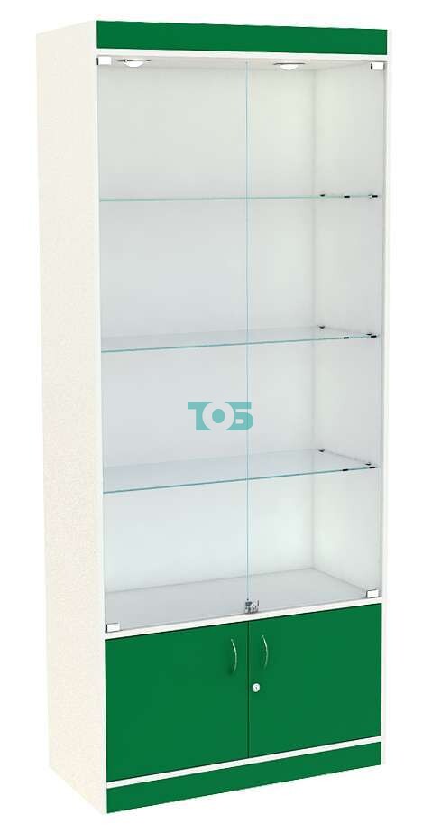 Отличия модели витрины закрытой из ДСП со стеклянными дверками для аптеки ИЗУМРУД-1-400-1: