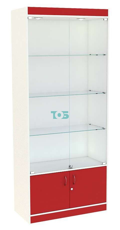 Отличия модели витрины из ДСП со стеклянными дверками для аптеки RED-1-400-1: