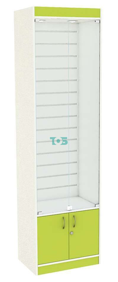 - в прозрачной части витрины – распашные стеклянные двери с замком;