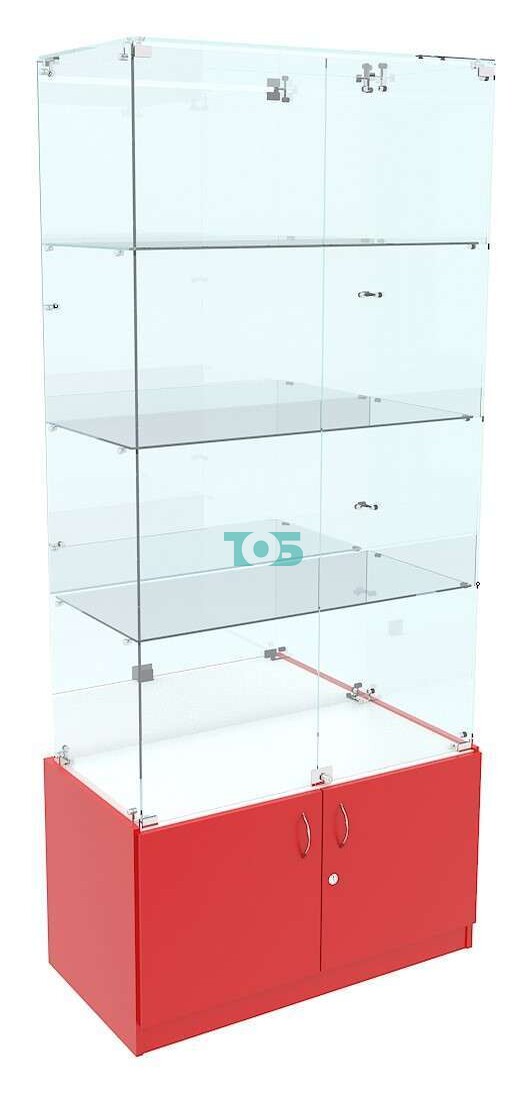 Отличия модели витрины прозрачной с зеркалом для аптеки RED-07:
