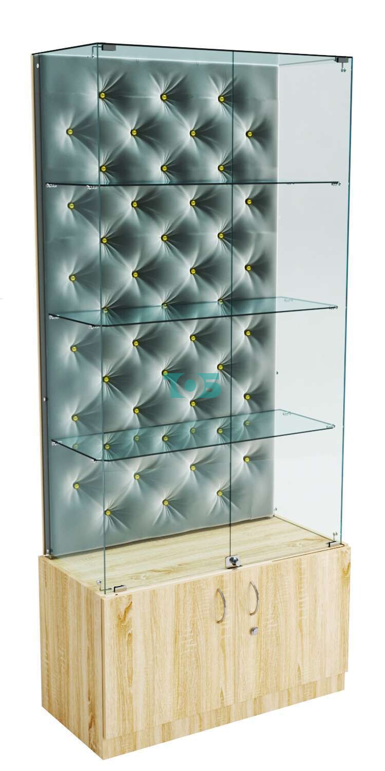 задняя стенка витрины выполнена с бархатной обивкой серого перламутра;