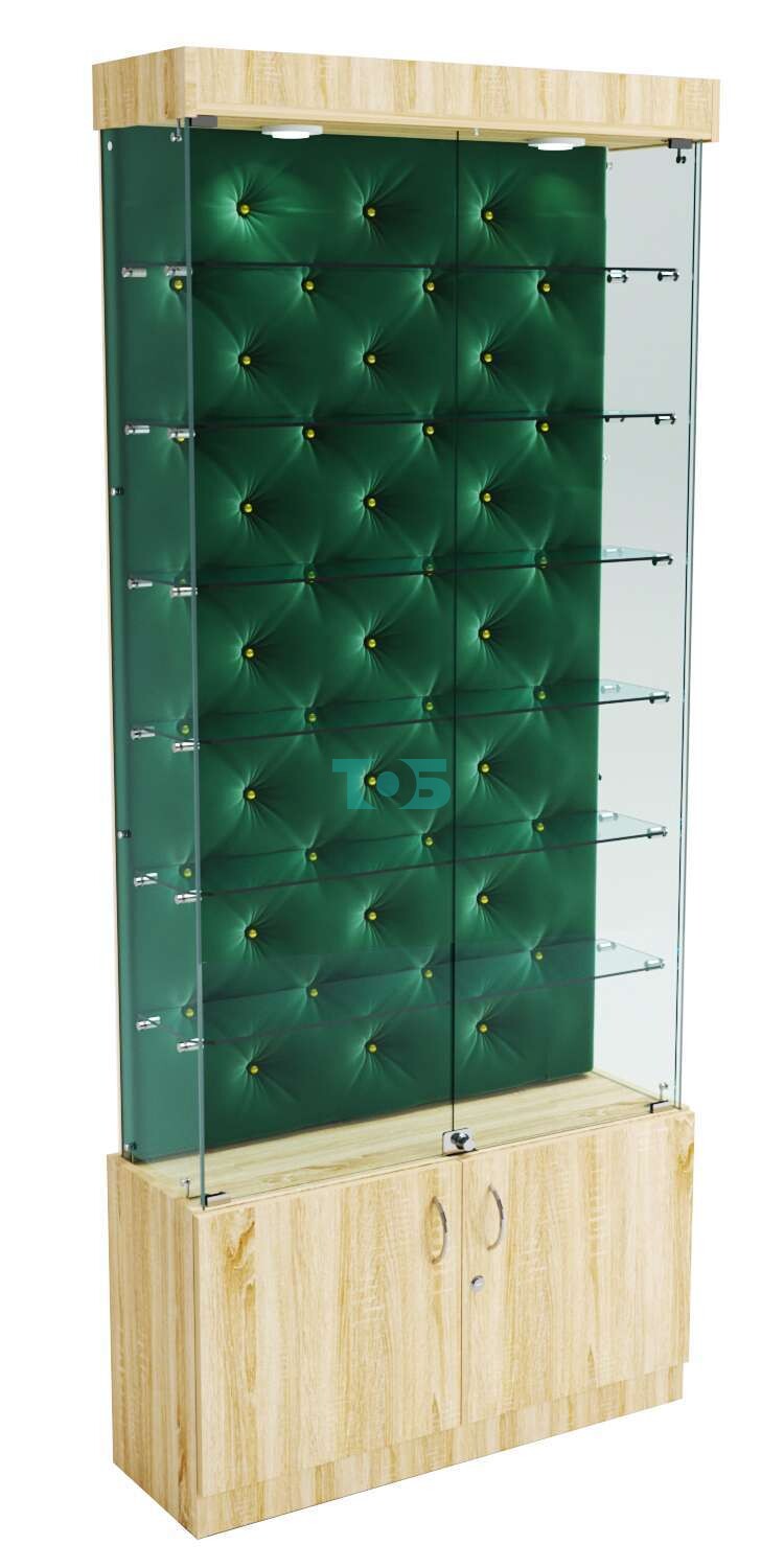 Высокая стеклянная витрина с зелёным бархатом ИС-09 — это отличное решение для владельцев торговых точек, которые хотят стильно и удобно организовать витринное пространство. Благодаря элегантному дизайну, функциональности и дополнительным возможностям хранения, эта витрина поможет подчеркнуть статус вашего магазина и привлечь внимание покупателей.