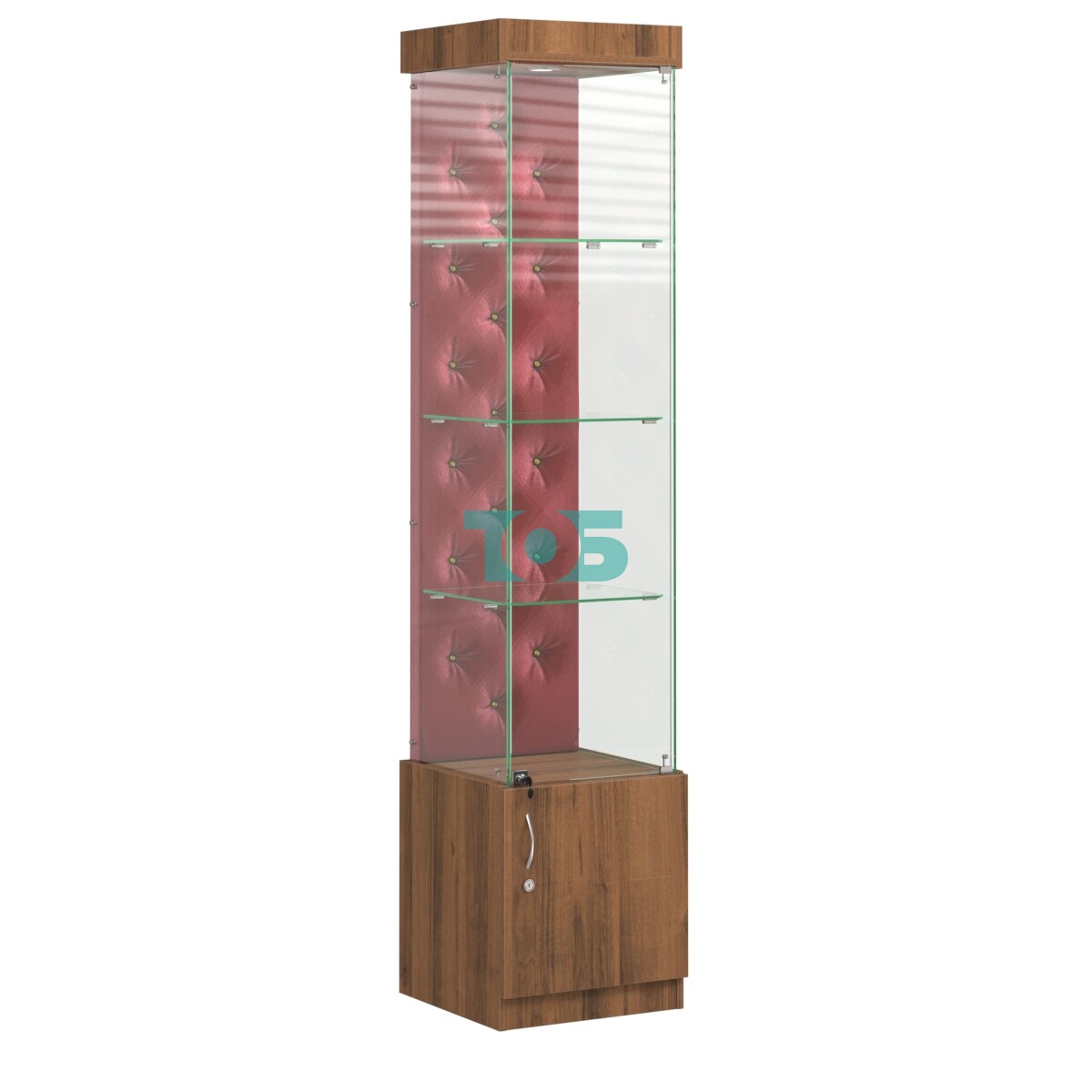 Высокая стеклянная витрина с КРАСНЫМ БАРХАТОМ ИС-02 (карета золото)