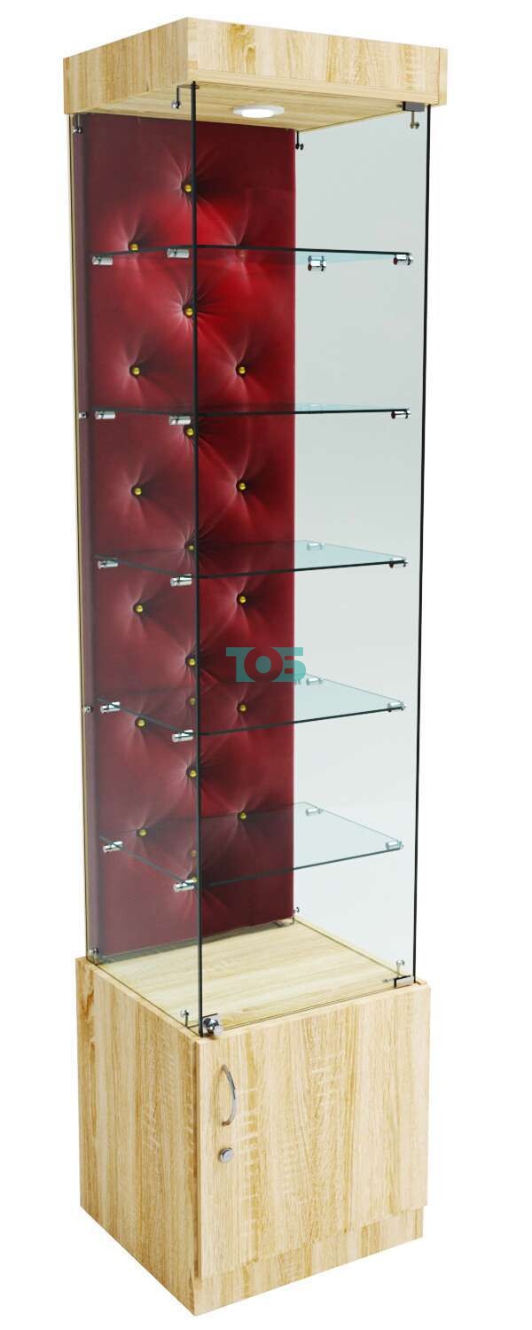 Высокая стеклянная витрина с красным бархатом ИС-502 — это отличное решение для владельцев магазинов, которые хотят создать запоминающуюся и функциональную экспозицию. Благодаря элегантному дизайну, верхней подсветке и дополнительным возможностям хранения, эта витрина поможет подчеркнуть уникальность ваших товаров и привлечь внимание покупателей.