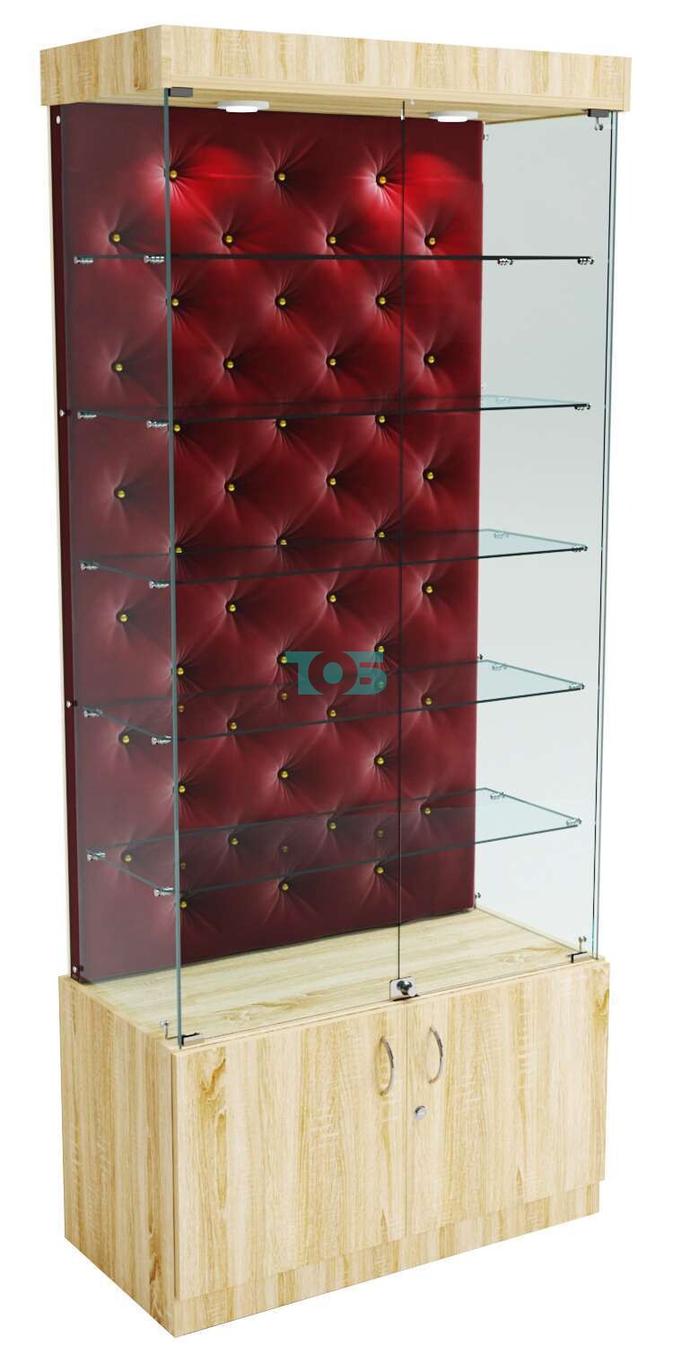 стеклянные дверцы с замком как в верхней прозрачной части, так и в нижней обеспечивают надёжное хранение товаров.