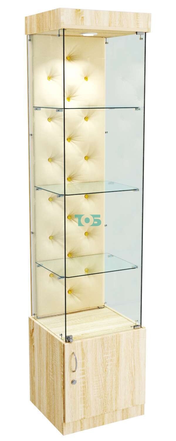 Высокая стеклянная витрина с кремовым бархатом ИС-02 — это отличное решение для владельцев магазинов, которые хотят создать элегантное и функциональное торговое пространство. Благодаря стильному дизайну, встроенной подсветке и дополнительным возможностям хранения, эта витрина поможет подчеркнуть статус вашего бизнеса и привлечь внимание покупателей.
