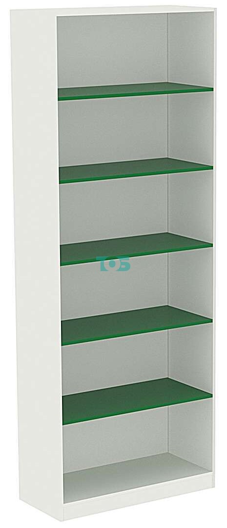 Отличия модели высокого торгового стеллажа с шестью полками для аптеки ИЗУМРУД-ВС-1-400: