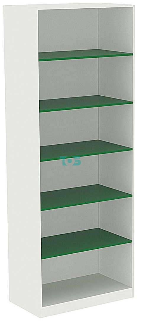 Отличия модели высокого торгового стеллажа с широкими полками для аптеки ИЗУМРУД-ВС-1-500: