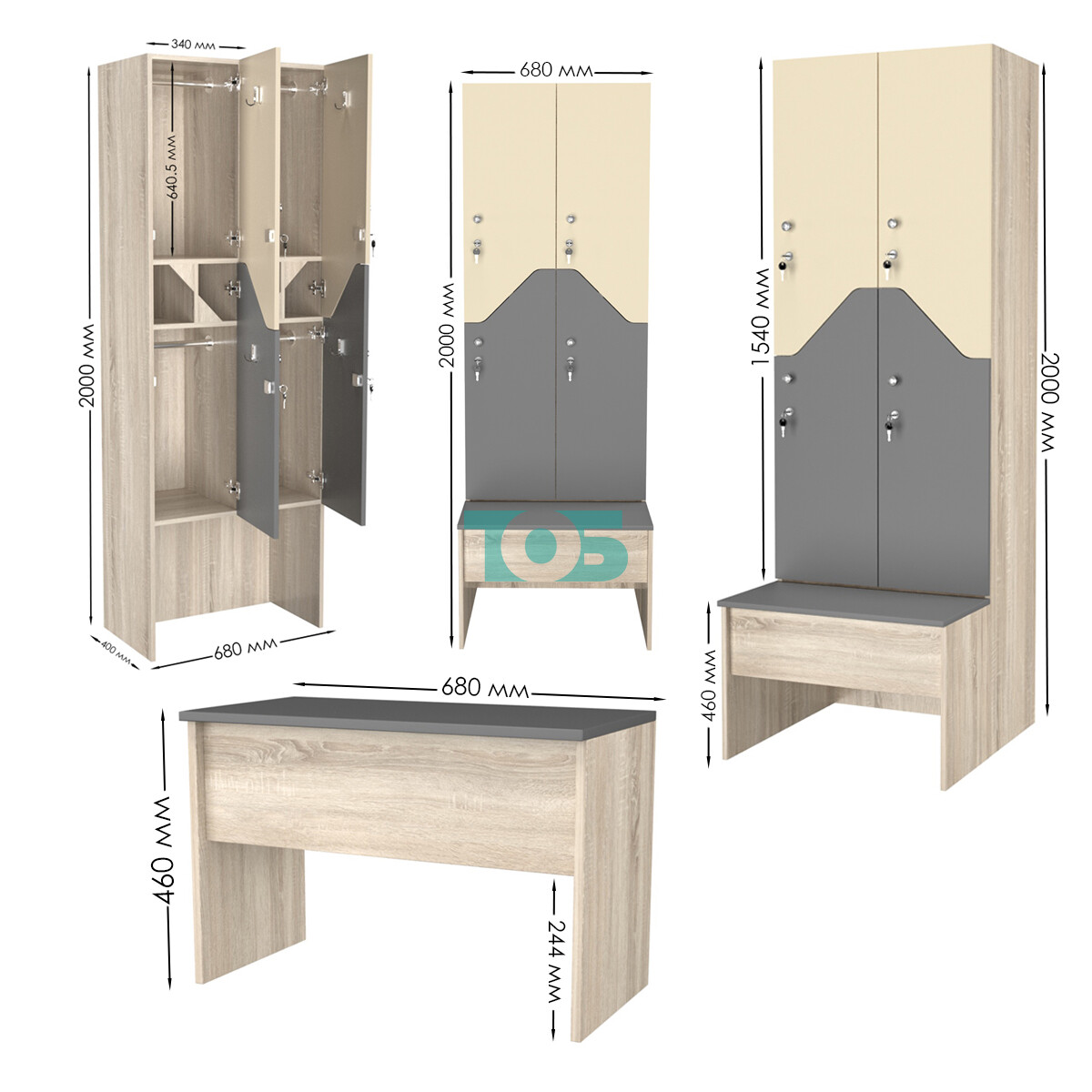 Габариты: глубина шкафа составляет 400 мм, а глубина скамейки — 350 мм. Такие размеры позволяют оптимально использовать пространство и обеспечивают удобство при использовании.