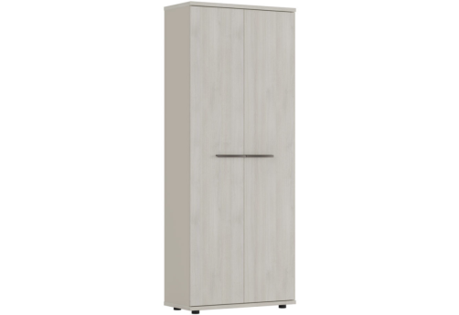 Шкаф две широкие секции 4 ниши (4 фасада ЛДСП, 2 ниши + 4 фасада стекло прозрачное в раме, 2 ниши) Динен, цвет дуб мали-белый