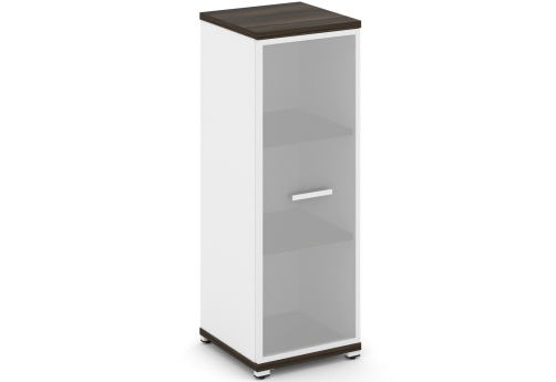 Шкаф одна широкая секция 4 ниши (2 фасада ЛДСП, 2 ниши + 2 фасада стекло белое матовое в раме, 1 ниша) Динен, цвет дуб мали-белый