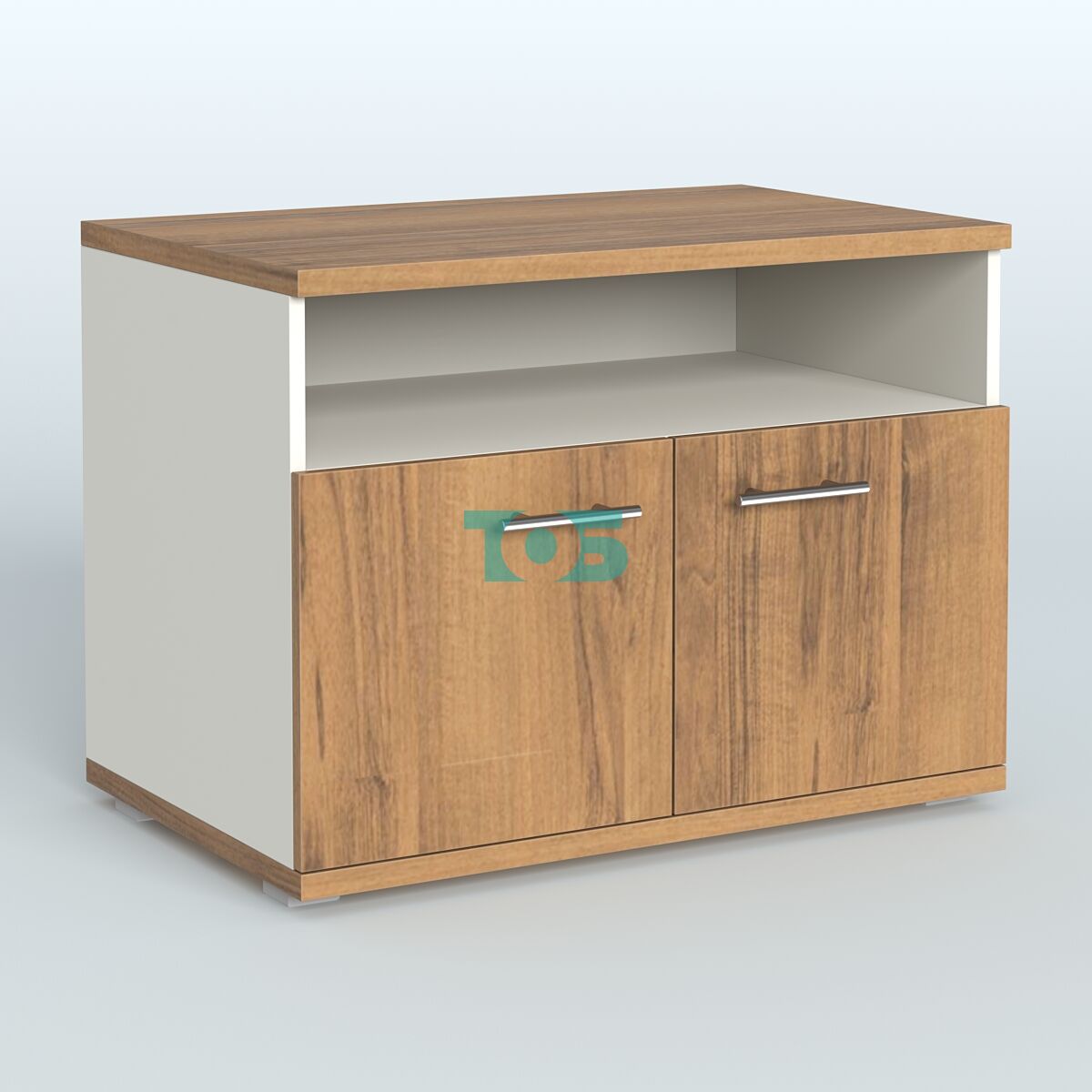 Тумба приставная с 3 ящиками (метабокс) и нишей с замком без топа Индиго Вуд, цвет белый + дуб светлый