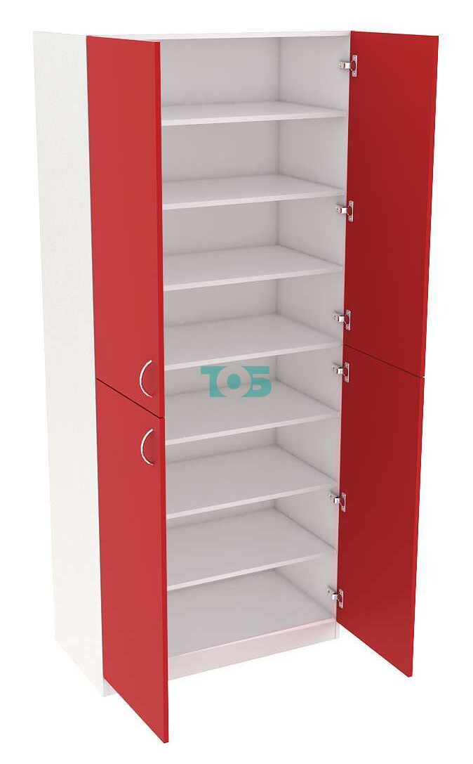 Отличие модели шкафа для аптек с полками серии RED №2: