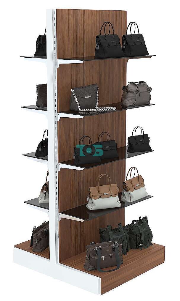 Отличия модели торгового стеллажа под дерево островного с тонированными полками ФЕНИКС №3: