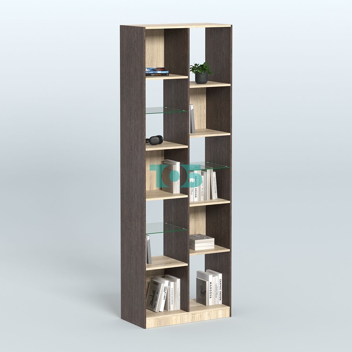 Отличия модели стеллажа из ДСП серии ЛОФТ №8-3 с полками стекло 5 мм: