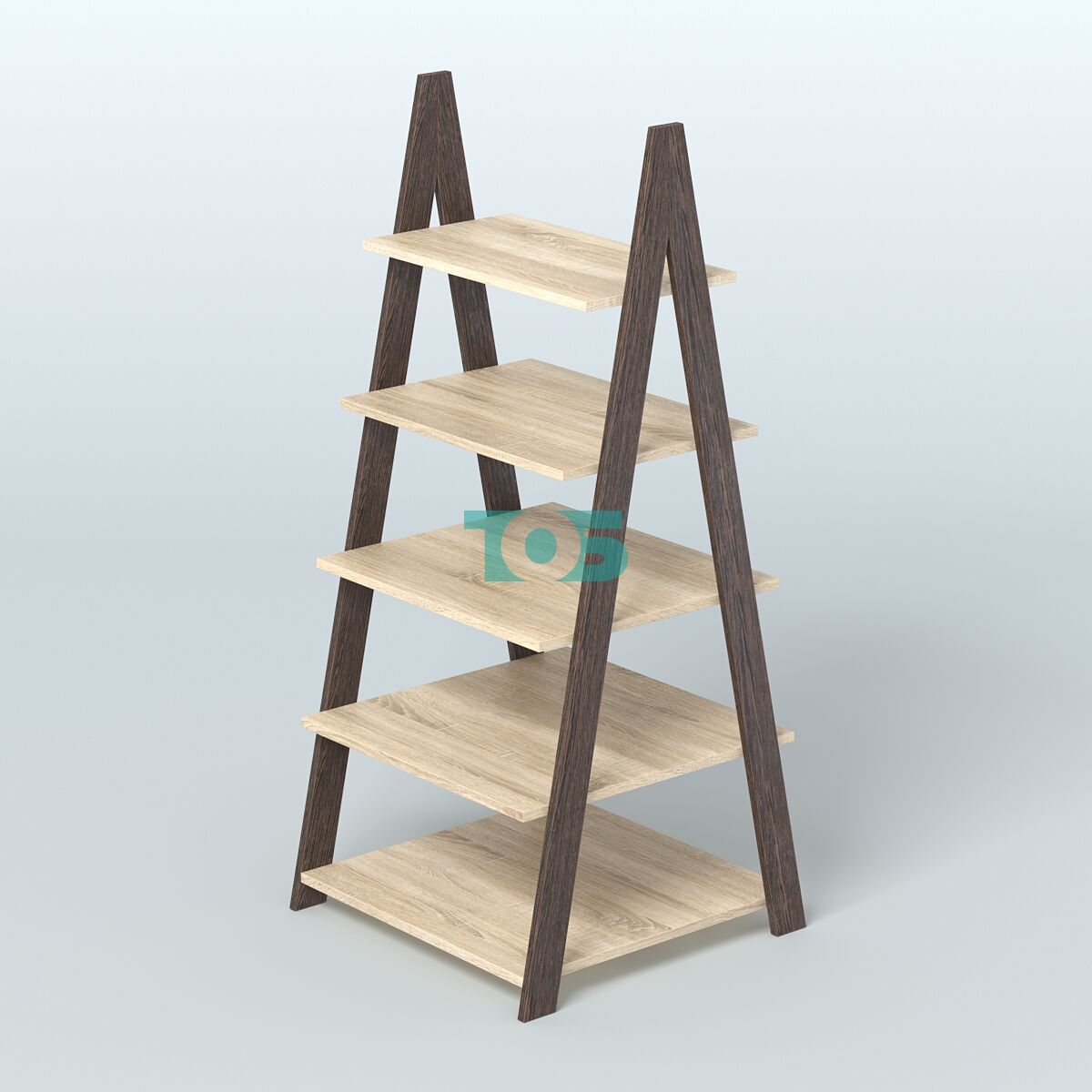 - стойка включает пять разных по глубине полок из ДСП 25 мм (900 - 900 - 800 - 650 - 500 мм) для выкладки Товара, по умолчанию выполненных в цвете ДУБ СОНОМА;
