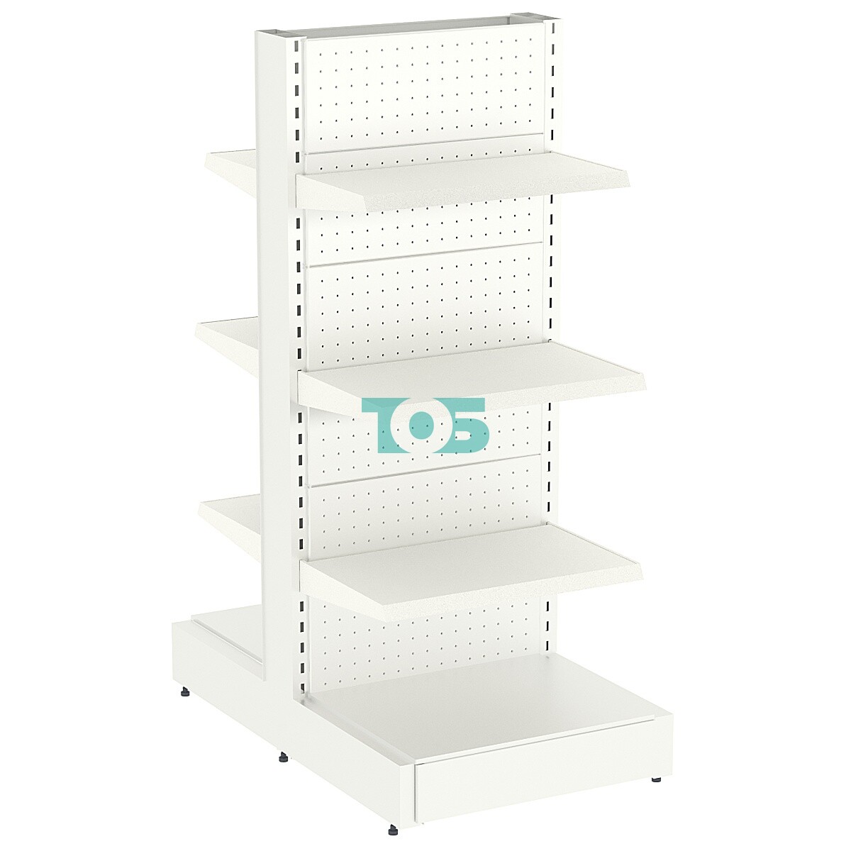 • Тип стеллажа: островной. Полки расположены по обеим сторонам, что позволяет использовать стеллаж для хранения предметов с двух сторон.