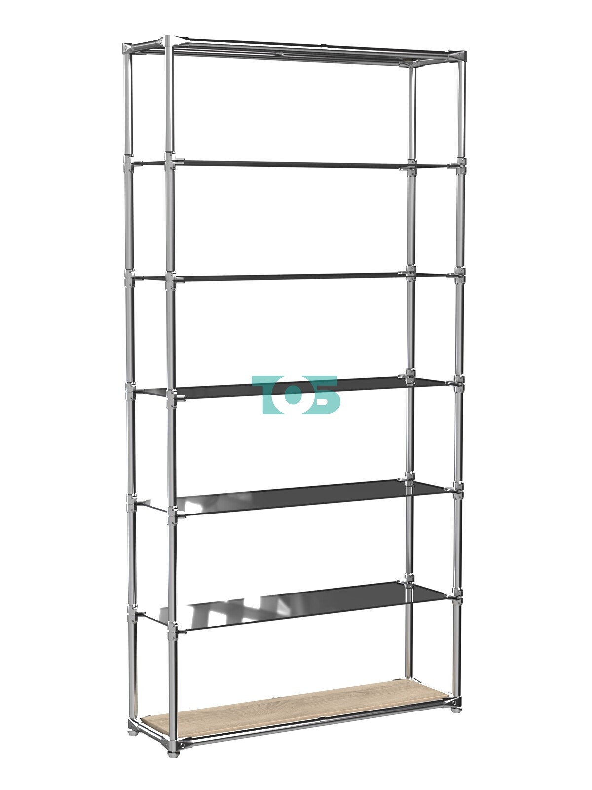 Эстетичный внешний вид: Хромированный каркас и тонированные стеклянные полки создают эффект легкости и воздушности, привлекая внимание к товарам