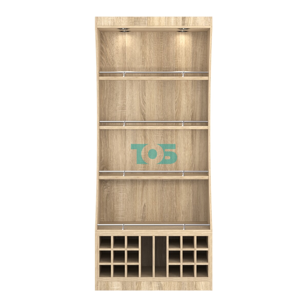 Подсветка: расположена в верхнем фризе, создаёт эффектную атмосферу и привлекает внимание к выставленному алкоголю.
