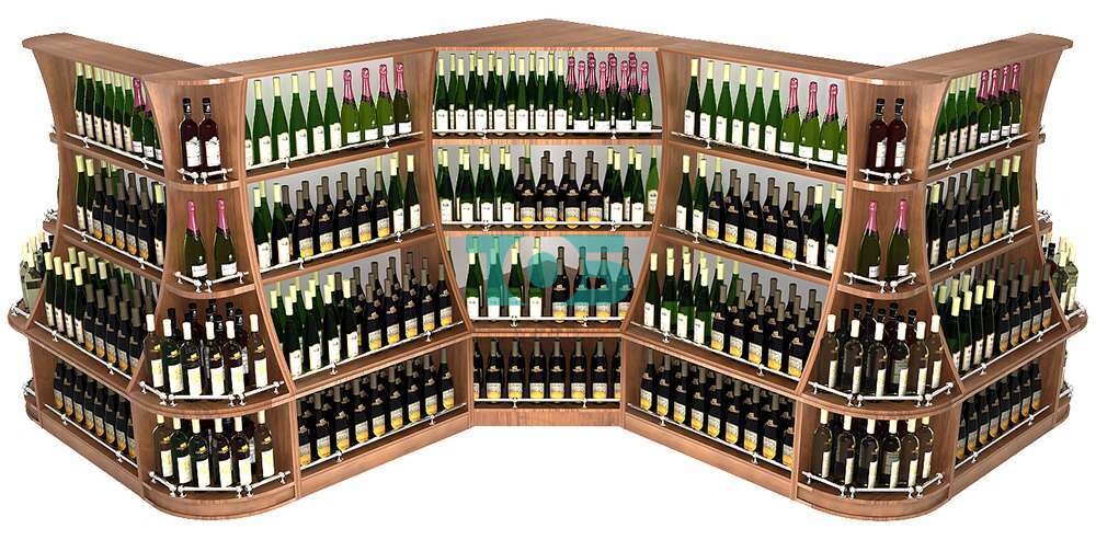 Угловой низкий изогнутый стеллаж для продажи алкоголя с секторами серии ГАРАНТ №4