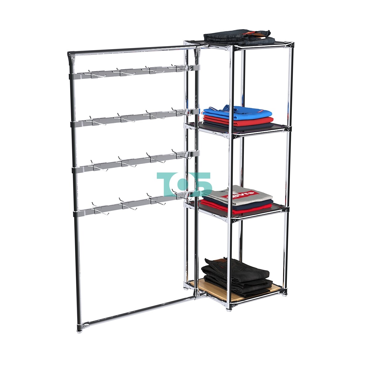Прямоугольные хромированные штанги: Расположены в левом крыле конструкции, позволяют использовать крючки или кронштейны на квадратную трубу.