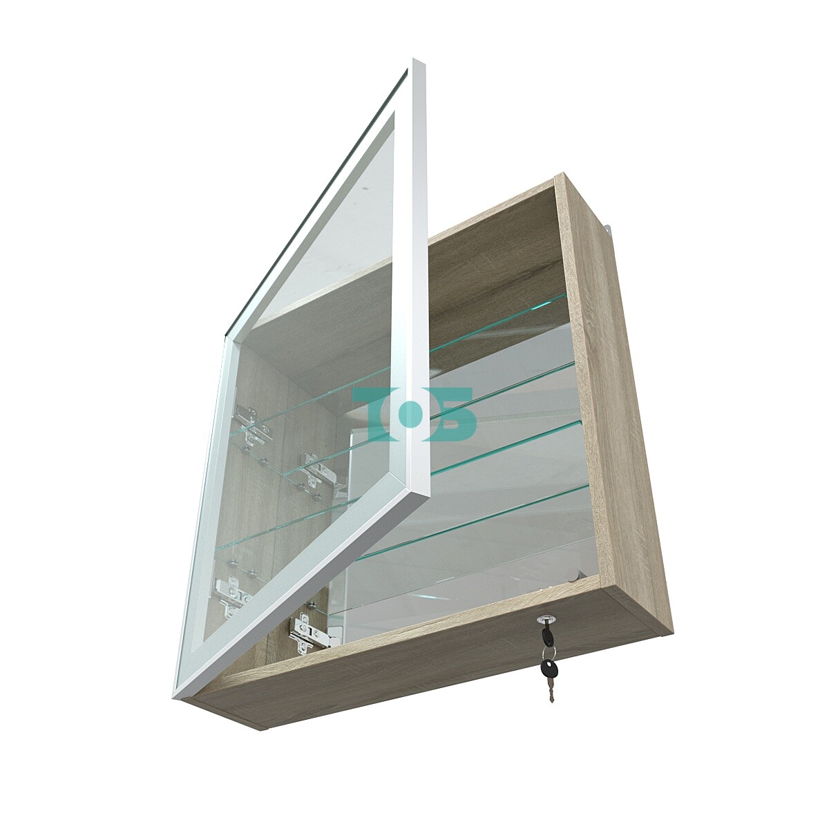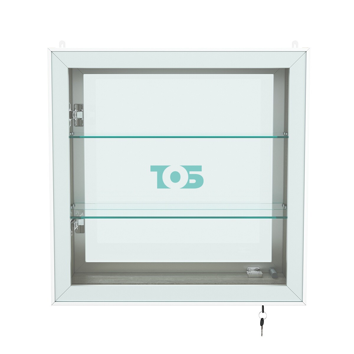 Прозрачные полки: две стеклянные полки обеспечивают максимальный обзор экспонатов со всех сторон, создавая эстетичный и привлекательный вид.