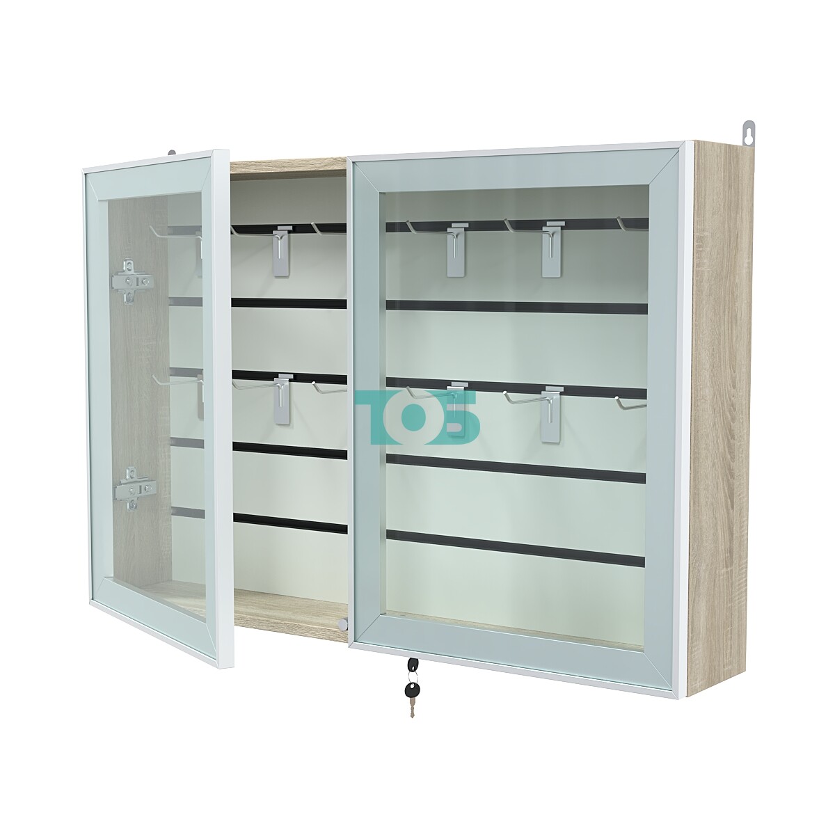 Задняя стенка — эконом-панель позволяет легко изменять конфигурацию внутренних элементов витрины, добавляя необходимые аксессуары.