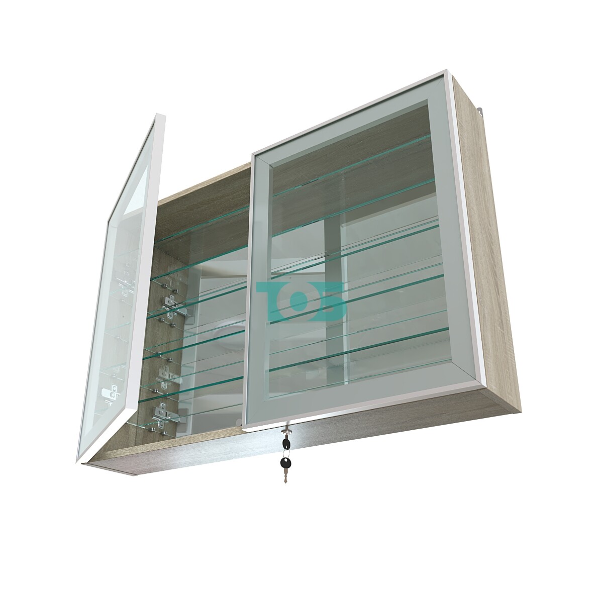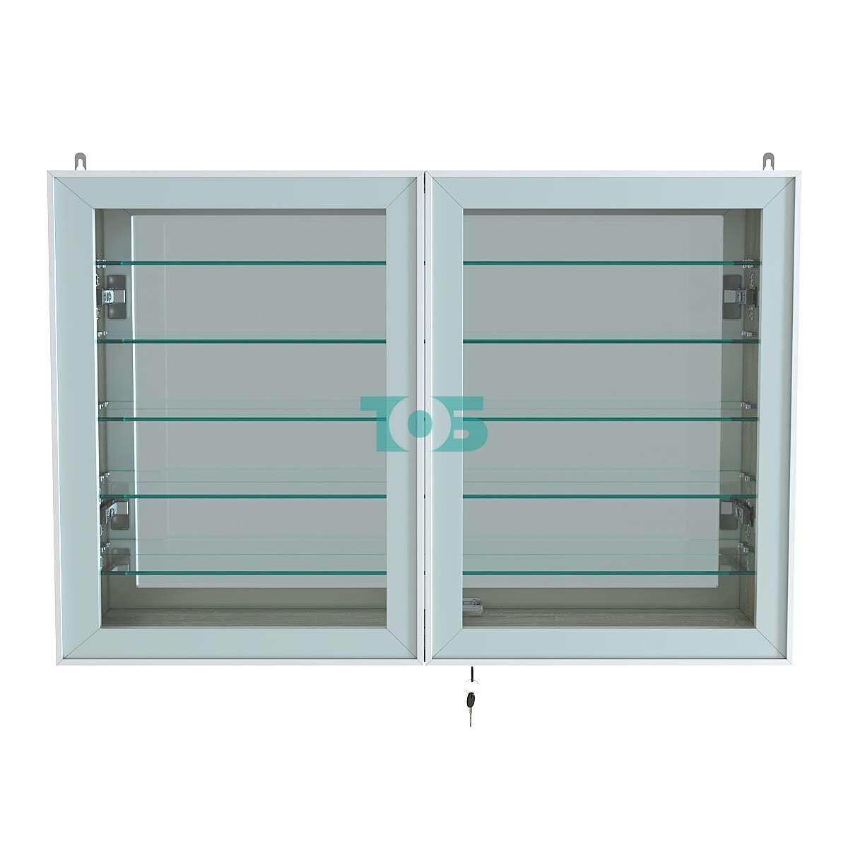 Две стеклянные распашные двери в элегантном алюминиевом каркасе с надежным замком обеспечивают безопасный доступ и защиту содержимого