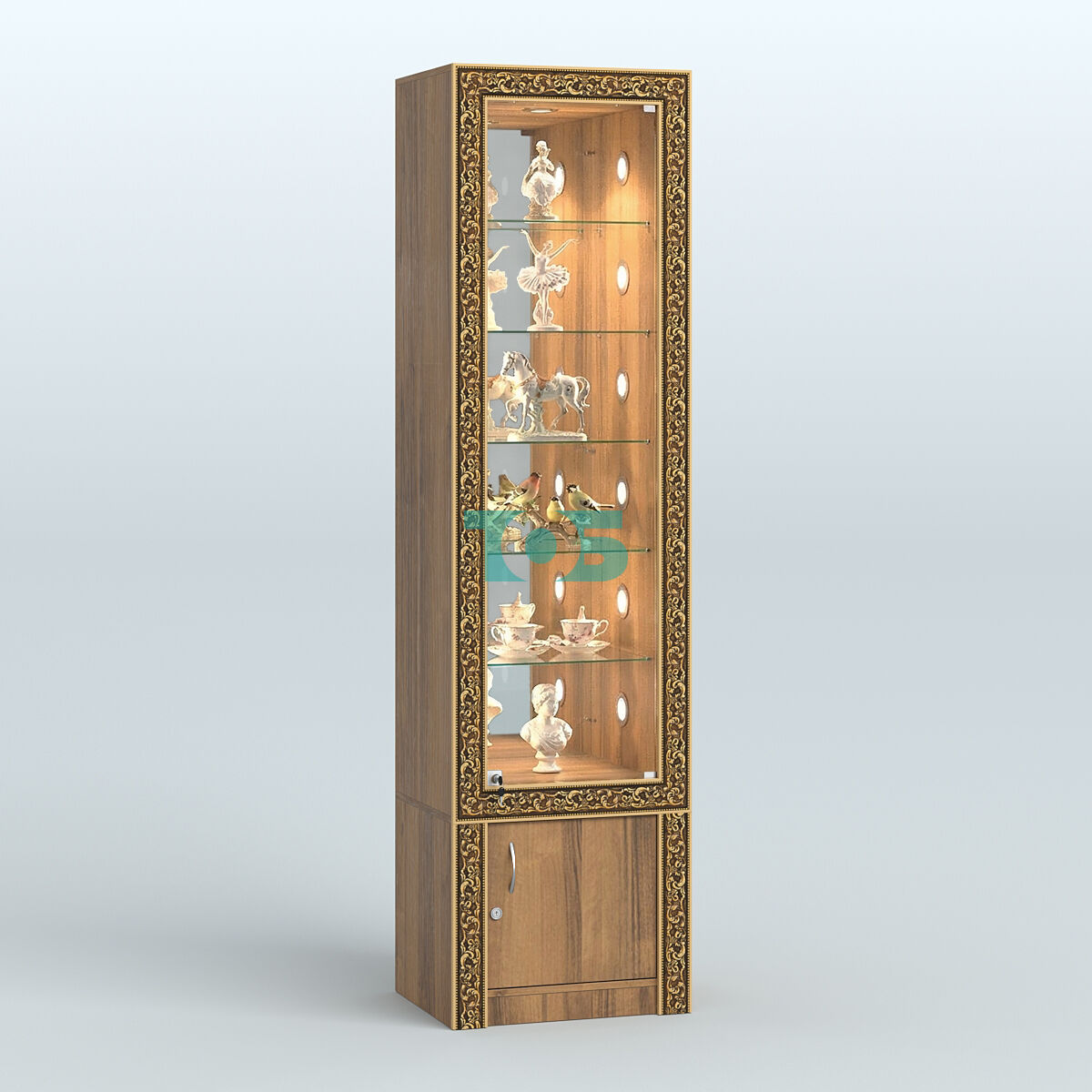 - серия витрин у которых фасадная часть декорированная цветными молдингами под золото. Эти элементы подчеркивают четкость линий, что помогает вписать витрину в интерьер любого стиля;