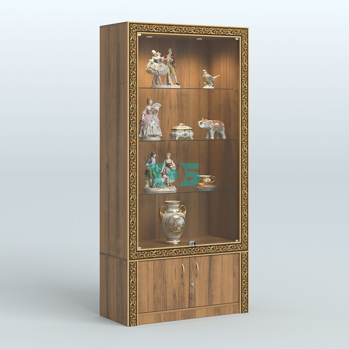- верхний фриз витрины укомплектован диодной подсветкой (два встроенных светильника);