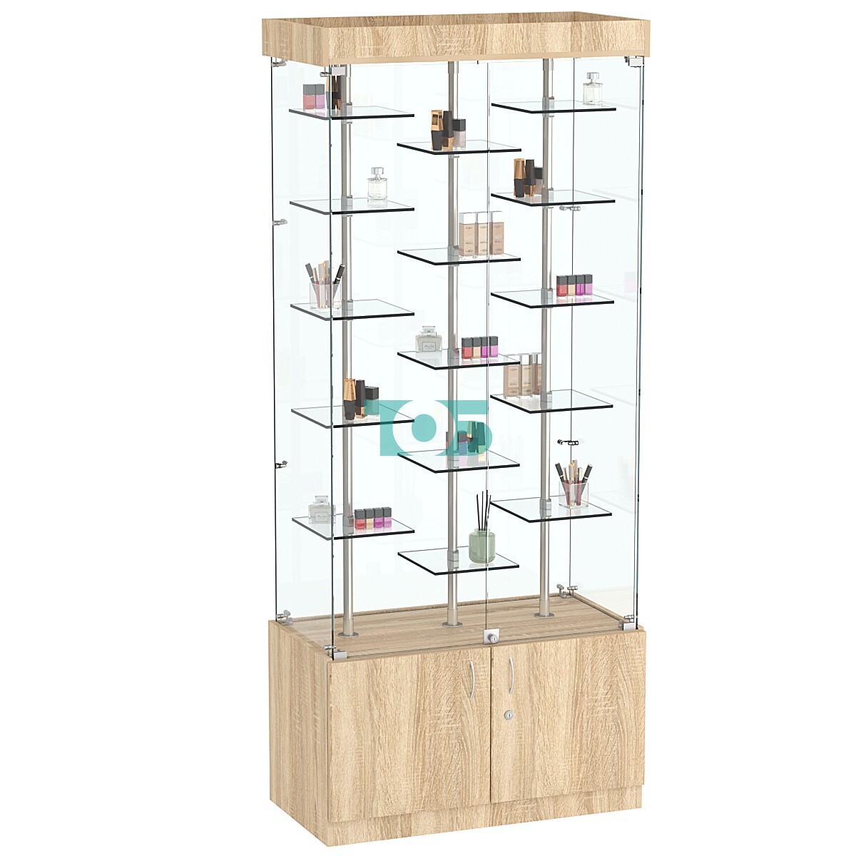 Отличия модели стеклянной торговой витрины с двойными регулируемыми по высоте полочками Фрактал №1-2: